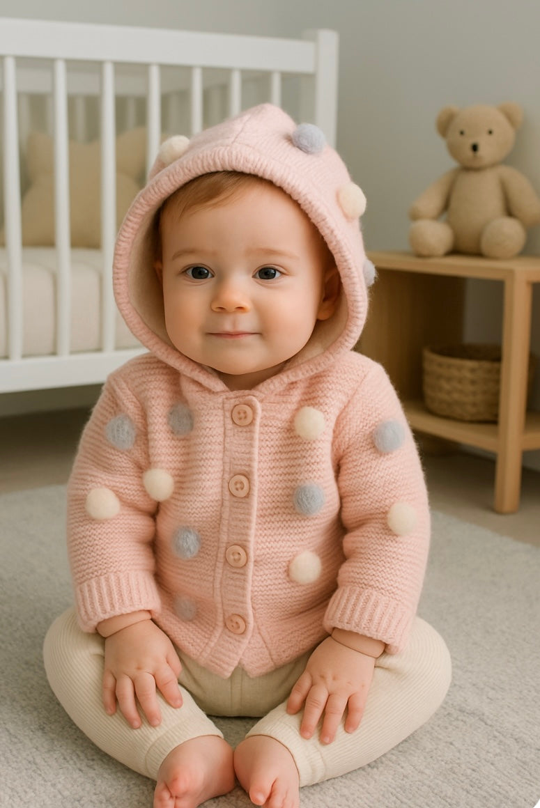 Machen Sie Ihr Baby zu einem echten Hingucker mit unserer kuscheligen Baby Strickjacke mit Bommel und Kapuze. Innen gefüttert für höchsten Wärmerückhalt - das perfekte Kleidungsstück für jedes Abenteuer im Freien! Entdecken Sie jetzt den unvergleichlichen Komfort!