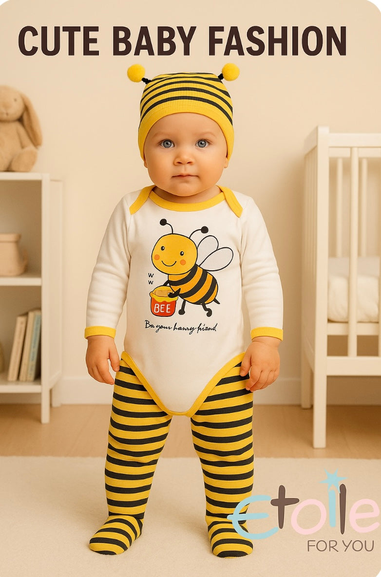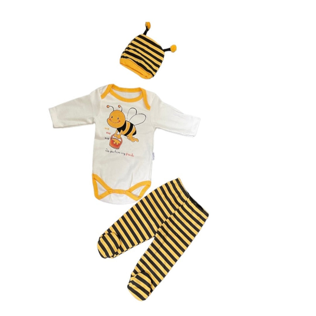 Entdecke unseren neuen, 3-teiligen Newborn Set - ein Must-have für jedes Baby! Verfügbar in schwarz und weiß, mitgelbem Akzent und Wolkenmotiv. Aus 100 % Baumwolle bestehend, ist es bequem und atmungsaktiv für ein fröhliches, sicheres und bequemes Baby-Outfit. Verleihe deiner Kleinen ein tolles und stilvolles Outfit!
